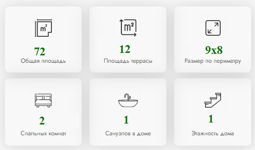 Общая площадь (включая террасу) 72 м2
